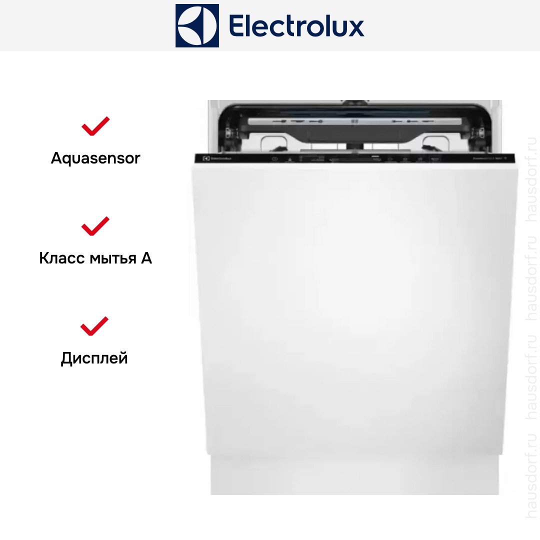 Встраиваемая модель Электролюкс отлично впишется в любой интерьер, главное — правильно выбрать место, чтобы подвести коммуникации. Устанавливается в нишу целиком, полностью закрывается декоративной панелью. Обратите внимание: в комплекте не идет фасад, его необходимо установить самостоятельно. Имеет стандартные размеры, поэтому может не поместиться на очень маленькой кухне. В камеру можно загрузить ограниченное число комплектов: 13 шт. Комплектом считается набор посуды на одного человека, который нужен для полноценного приема пищи: глубокая и плоская тарелки, тарелка для салата, блюдце под чашку, сама чашка, ложка и вилка.