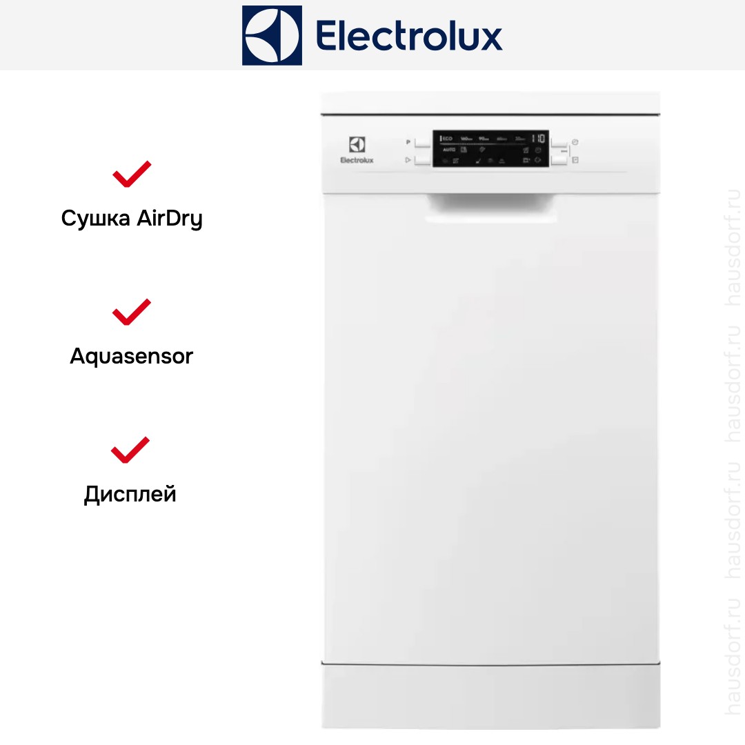 Посудомоечная машина Electrolux ESA42110SW — компактное и продуманное решение для небольшой кухни, которое сочетает в себе аккуратный дизайн и эффективную функциональность. Корпус и панель управления выполнены в белом цвете, что делает прибор универсальным в сочетании с любой бытовой техникой и мебелью. Открытая панель с цифровым дисплеем обеспечивает понятный и быстрый доступ ко всем настройкам. Гладкие линии и минималистичный внешний вид придают изделию современный облик, при этом габариты 84,8×44,6×61 см экономят место и подходят для узких ниш.