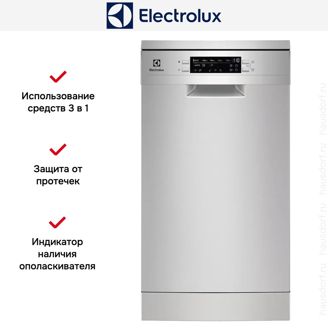 Посудомоечная машина Electrolux ESA63200SX — стильное и продуманное решение для компактной кухни, объединяющее практичный дизайн из нержавеющей стали и продвинутые технологии мытья посуды. Отдельностоящая узкая модель высотой 84.8 см, шириной 44.6 см и глубиной 61 см занимает минимум места, при этом обеспечивая вместимость до 10 комплектов, что идеально подходит для небольших семей или тех, кто ценит аккуратность. Внутренняя камера выполнена из прочной нержавеющей стали, что увеличивает долговечность и упрощает уход; верхний отсек оснащён полочкой для чашек, нижний — направляющими для тарелок, а нержавеющие корзины с регулируемой по высоте конструкцией позволяют гибко размещать посуду разной формы и размера. Электронное управление с открытой панелью и информативным дисплеем делает эксплуатацию интуитивной: доступны четыре температурных режима и восемь стандартных программ, включая экономичную, быструю мойку, стандартное очищение и режим предварительного полоскания, а также функция самоочистки, поддерживающая идеальную гигиену камеры. Технология сушки AirDry обеспечивает качественное высыхание с минимальным энергопотреблением, а возможность подключения к горячей воде сокращает время циклов и уменьшает нагрузку на электроэнергию; прибор совместим с современными моющими средствами «3 в 1». Для комфорта предусмотрён таймер отсрочки запуска с возможностью программирования до 24 часов и индикаторы наличия ополаскивателя и соли, а также индикатор оставшегося времени программы в минутах и сигнал отложенного старта, позволяющие планировать работу техники без лишних забот. Экономичность и безопасность также находятся на высоком уровне: средний расход воды на цикл составляет всего 9.9 литра, энергопотребление на цикл — 0.75 кВт·ч, максимальная температура мойки достигает 60 °C, уровень шума не превышает 46 дБ, класс энергопотребления — B; при этом мощность подключения равна 1.95 кВт, прибор рассчитан на напряжение 220-240 В и частоту 50-60 Гц. Для защиты от непредвиденных ситуаций реализована система защиты от протечек, а функция автоматического отключения повышает удобство эксплуатации и безопасность. Внешняя панель управления и корпус нержавеющей расцветки придают технике современный элегантный вид, легко вписываясь в разные интерьерные решения, а продуманная компоновка отсеков и информативная индикация делают процесс загрузки и ухода быстрым и приятным, предоставляя пользователю уверенность в качестве мытья и сушке без лишних усилий.