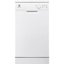 Отдельностоящая модель Электролюкс отлично впишется в кухонный интерьер, главное — правильно выбрать место, чтобы подвести коммуникации. Имеет уменьшенную ширину — благодаря этому поместится даже на очень маленькой кухне. В камеру можно загрузить ограниченное число комплектов: 9 шт. Комплектом считается набор посуды на одного человека, который нужен для полноценного приема пищи: глубокая и плоская тарелки, тарелка для салата, блюдце под чашку, сама чашка, ложка и вилка.