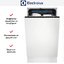 Посудомоечная машина Electrolux EEG63400L — встраиваемая полностью интегрированная компактная модель с лаконичным дизайном. Панель управления скрыта под фасадом, а видимая часть сделана в черном цвете для аккуратного контраста с мебелью. Корпус рассчитан под ваш фасад, поэтому внешний вид кухни остается целостным и минималистичным. Высота изделия 81.8 см, ширина 44.6 см, глубина 55 см, что делает её отличным решением для узких ниш.