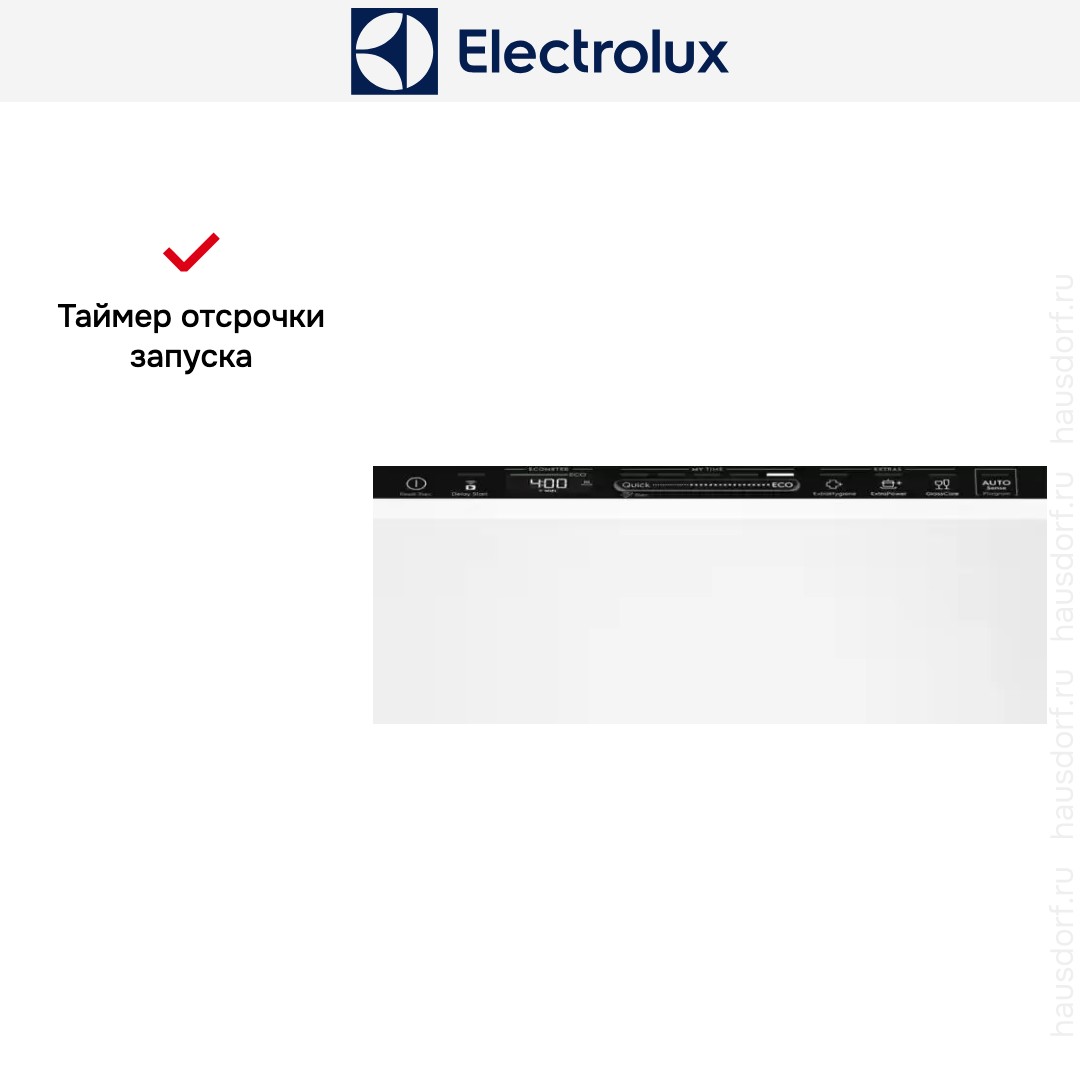 С его помощью можно сократить количество циклов мойки и добавлять посуду, пока камера не заполнится, не опасаясь, что посуда не будет вымыта в срок. Кроме того, отсроченный запуск очень удобен при многотарифных счетчиках на электроэнергию: запуск можно запланировать на ночное время, когда тарифы, а значит, и расходы будут минимальными. Можно также откладывать старт, чтобы не перегружать слишком старую или интенсивно используемую электрическую сеть и избежать отключения.