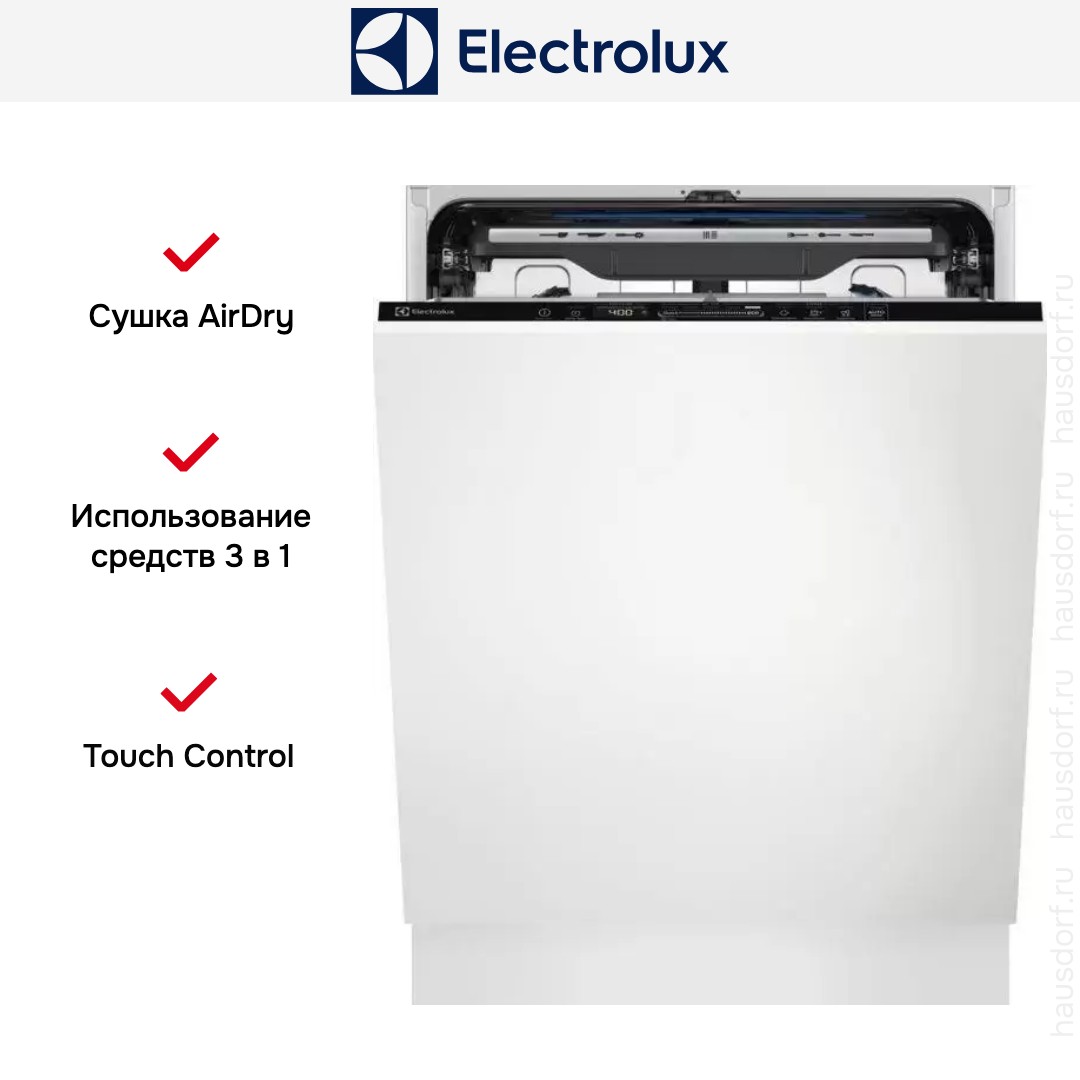 Сушка AirDry в посудомоечных машинах Electrolux позволяет досушить посуду посредством естественного притока воздуха. По завершению рабочего цикла дверца посудомоечной машины автоматически приоткрывается на 10 см, что позволяет избежать появления пятен, разводов и неприятного запаха.