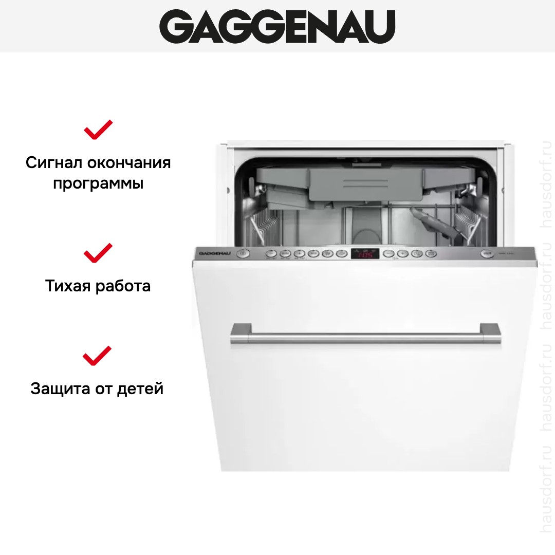 Встраиваемая модель Гаггенау отлично впишется в любой интерьер, главное — правильно выбрать место, чтобы подвести коммуникации. Устанавливается в нишу целиком, полностью закрывается декоративной панелью. Обратите внимание: в комплекте не идет фасад, его необходимо установить самостоятельно. Имеет уменьшенную ширину — благодаря этому поместится даже на очень маленькой кухне. В камеру можно загрузить ограниченное число комплектов: 10 шт. Комплектом считается набор посуды на одного человека, который нужен для полноценного приема пищи: глубокая и плоская тарелки, тарелка для салата, блюдце под чашку, сама чашка, ложка и вилка.