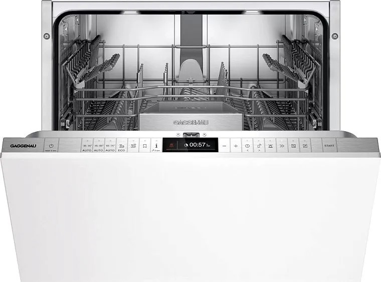 Встраиваемая модель Гаггенау отлично впишется в любой интерьер, главное — правильно выбрать место, чтобы подвести коммуникации. Устанавливается в нишу целиком, полностью закрывается декоративной панелью. Обратите внимание: в комплекте не идет фасад, его необходимо установить самостоятельно. Имеет стандартные размеры, поэтому может не поместиться на очень маленькой кухне. В камеру можно загрузить ограниченное число комплектов: 12 шт. Комплектом считается набор посуды на одного человека, который нужен для полноценного приема пищи: глубокая и плоская тарелки, тарелка для салата, блюдце под чашку, сама чашка, ложка и вилка.