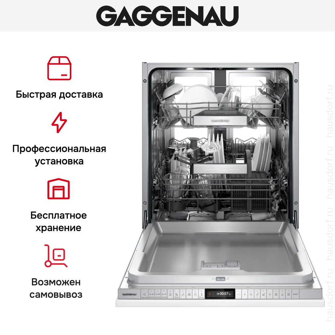 Встраиваемая модель Гаггенау отлично впишется в любой интерьер, главное — правильно выбрать место, чтобы подвести коммуникации. Устанавливается в нишу целиком, полностью закрывается декоративной панелью. Обратите внимание: в комплекте не идет фасад, его необходимо установить самостоятельно. Имеет стандартные размеры, поэтому может не поместиться на очень маленькой кухне. В камеру можно загрузить ограниченное число комплектов: 12 шт. Комплектом считается набор посуды на одного человека, который нужен для полноценного приема пищи: глубокая и плоская тарелки, тарелка для салата, блюдце под чашку, сама чашка, ложка и вилка.