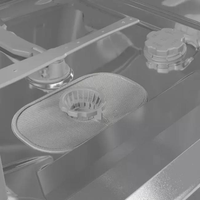 Система ополаскивания и автоматической промывки фильтров, которая предотвращает засоры. Благодаря этому засохшие загрязнения или не убранные перед мойкой кусочки пищи не забивают слив.