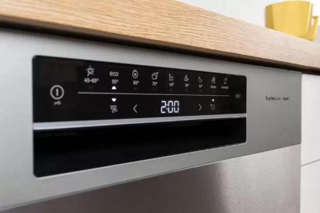 Управление посудомоечной машиной позволяет выбирать температуру мытья, длительность цикла, а также дополнительные опции. Панель управления может располагаться на фасаде прибора, если ПММ отдельностоящая или настольная, или на торце дверцы у встраиваемых моделей.