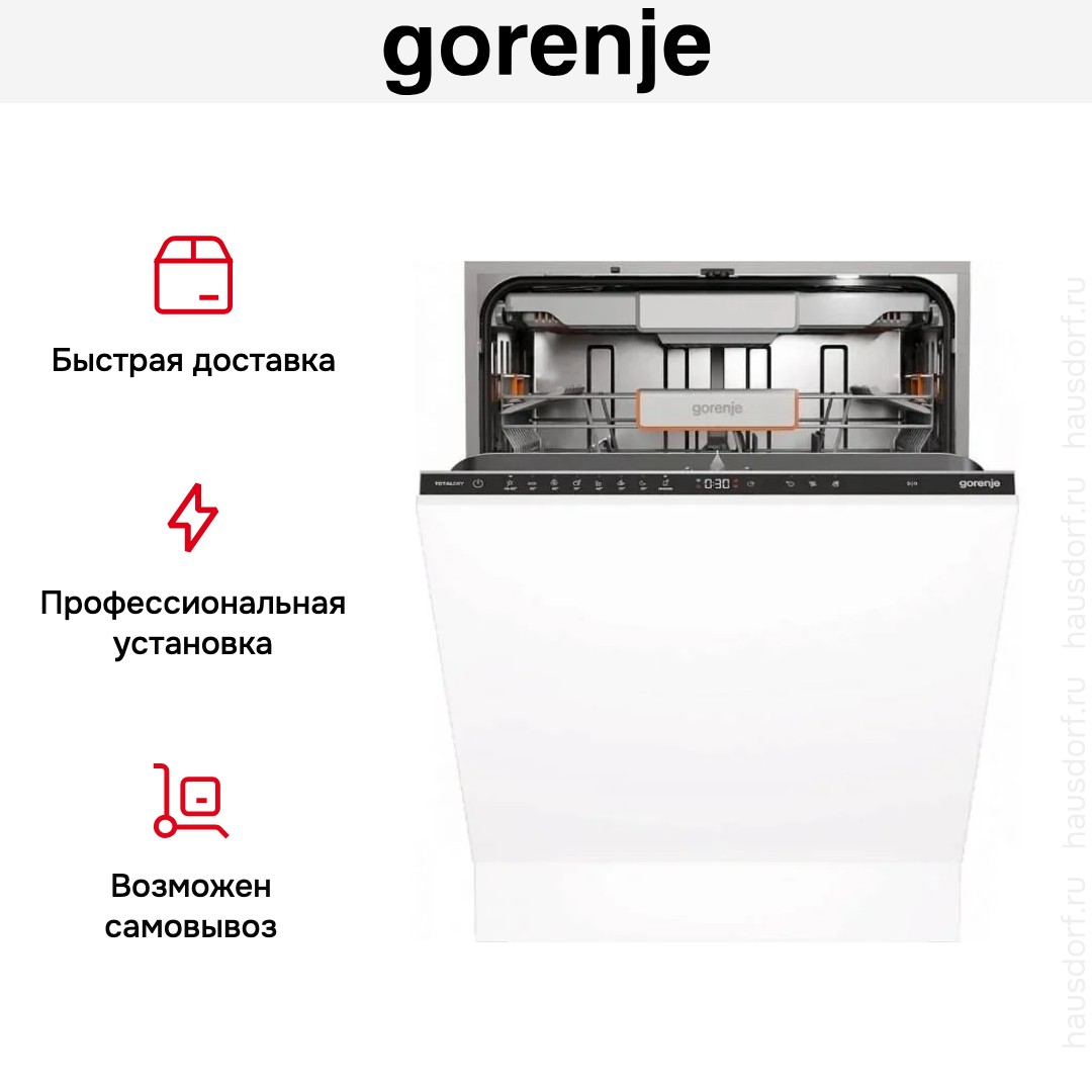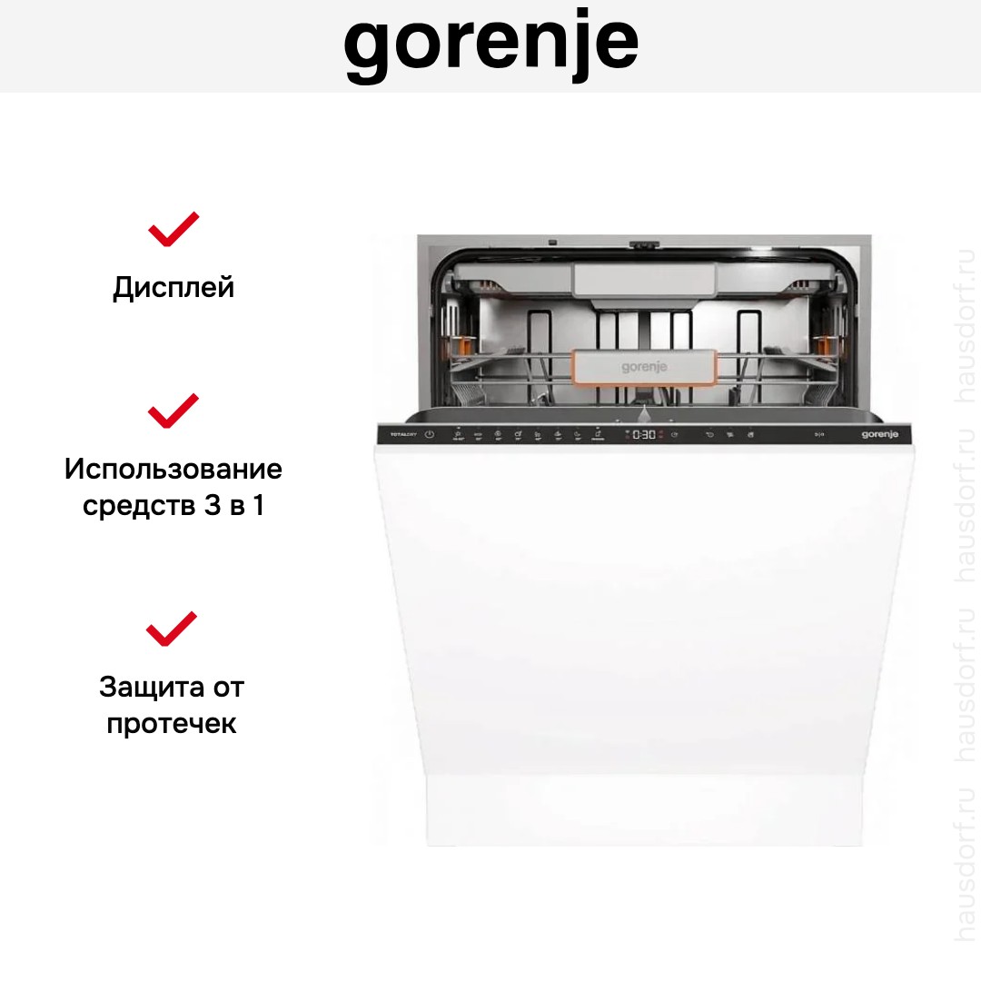Посудомоечная машина Gorenje GV693A65AD — это вместительная и эстетичная техника для современной кухни, полностью встраиваемая под фасад мебели. Благодаря нейтральному дизайну и возможности маскировки под дверцу шкафа она идеально впишется в любой интерьер, сохраняя гармонию пространства. Габариты корпуса — 81,6 × 59,8 × 55,5 см — позволяют разместить устройство в стандартной нише размером 90 × 60 × 56 см, обеспечивая свободу при планировке кухонного гарнитура.