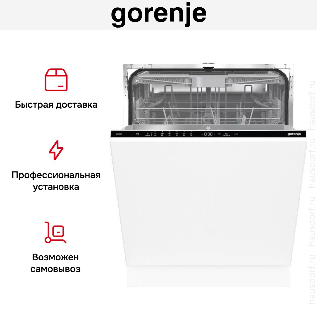 Посудомоечная машина Gorenje GV-643E90 — встраиваемая полноразмерная модель, спроектированная для аккуратной интеграции под фасад кухни. Высота 81.6 см, ширина 59.8 см и глубина 55.5 см позволяют разместить прибор в нише 82×60×56 см без выступающих элементов. Панель управления черного цвета остается внешним акцентом, а дверца под ваш фасад сохраняет общий стиль помещения.
