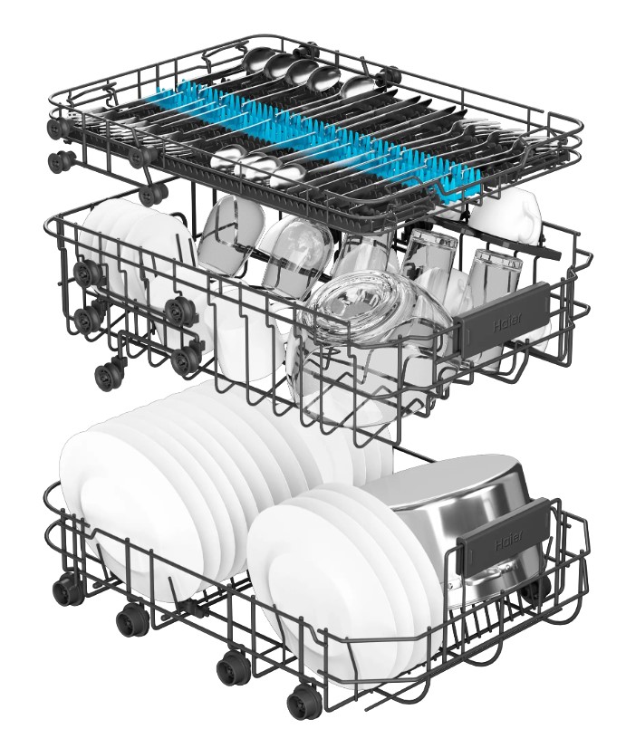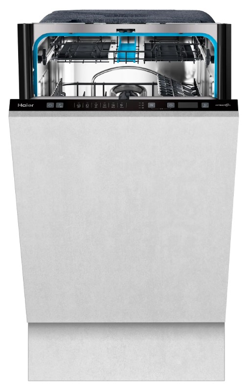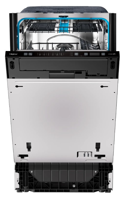 Встраиваемая модель Хайер отлично впишется в любой интерьер, главное — правильно выбрать место, чтобы подвести коммуникации. Устанавливается в нишу целиком, полностью закрывается декоративной панелью. Обратите внимание: в комплекте не идет фасад, его необходимо установить самостоятельно. Имеет уменьшенную ширину — благодаря этому поместится даже на очень маленькой кухне. В камеру можно загрузить ограниченное число комплектов: 10 шт. Комплектом считается набор посуды на одного человека, который нужен для полноценного приема пищи: глубокая и плоская тарелки, тарелка для салата, блюдце под чашку, сама чашка, ложка и вилка.