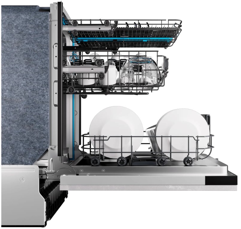 Полноразмерные модели выбирают в больших семьях, а также те, кто много готовит или часто принимает гостей. Их вместимость может составить до 15 комплектов посуды, а габаритные размеры соответствуют размерам стандартной кухонной мебели шириной и глубиной 60 см и высотой 82-85 см. Они выпускаются как во встраиваемом, так и в отдельностоящем варианте: во втором случае для установки понадобится достаточно много места. Как правило, полноразмерные приборы отличаются большим набором стандартных и специальных программ мойки, а также дополнительных опций: в частности, они оснащаются третьей корзиной для мытья столовых приборов.