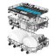 Верхняя корзина может регулироваться по высоте, так что при необходимости в нее можно поместить тарелки большего размера. Нижняя корзина позволяет установить вертикально большие суповые тарелки и блюда большого диаметра — для этого верхнюю корзину можно поднять выше. Тарелки обычно устанавливаются в откидные рамки-держатели, которые легко складываются на дно корзины. Всю посуду в нижней корзине рекомендуется устанавливать без соприкосновения предметов друг с другом, углублением к центру для более интенсивного воздействия струй воды на внутреннюю часть посуды.