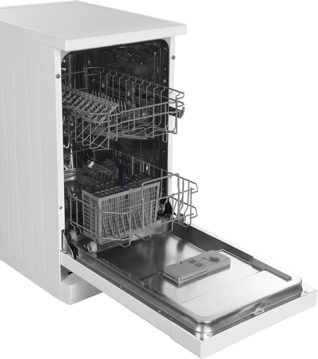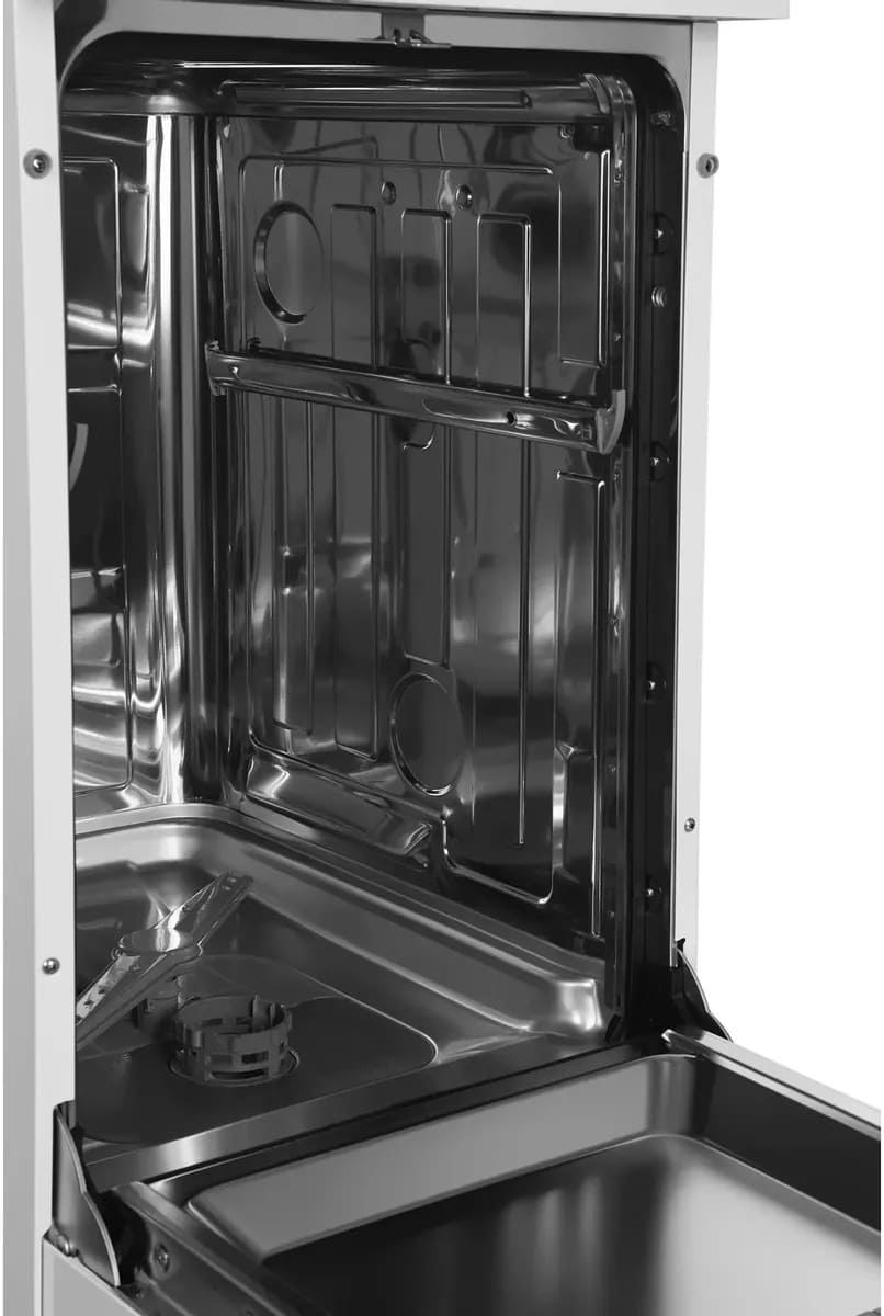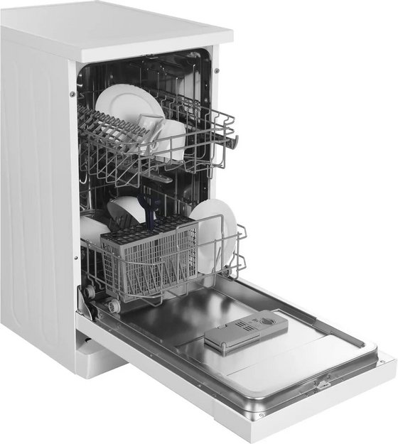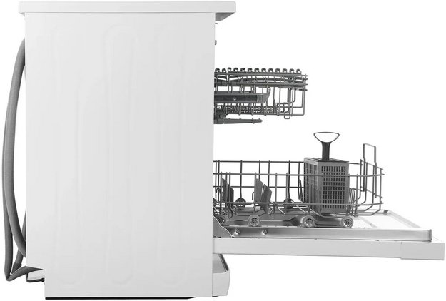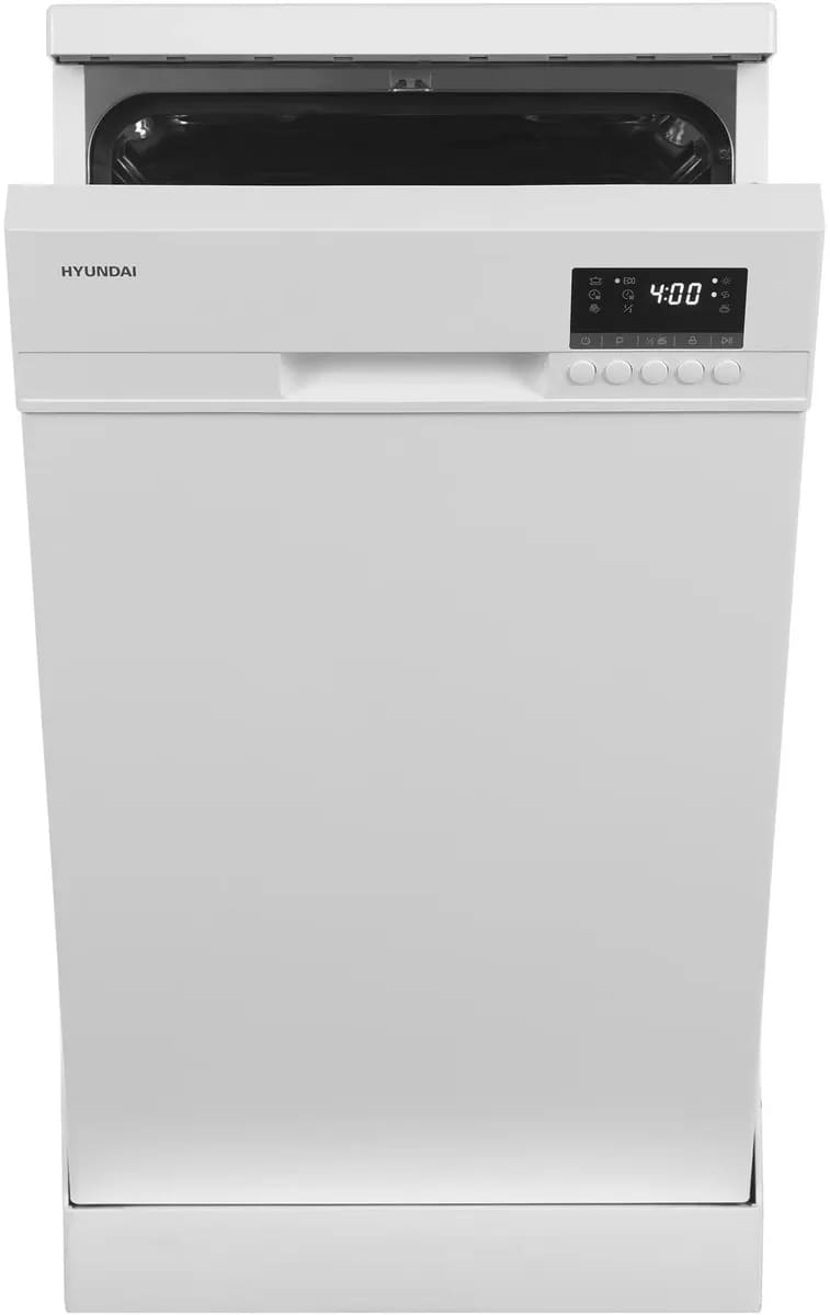 Отдельностоящая модель Хендай отлично впишется в кухонный интерьер, главное — правильно выбрать место, чтобы подвести коммуникации. Имеет уменьшенную ширину — благодаря этому поместится даже на очень маленькой кухне. В камеру можно загрузить ограниченное число комплектов: 9 шт. Комплектом считается набор посуды на одного человека, который нужен для полноценного приема пищи: глубокая и плоская тарелки, тарелка для салата, блюдце под чашку, сама чашка, ложка и вилка.