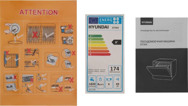 Отдельностоящая модель Хендай отлично впишется в кухонный интерьер, главное — правильно выбрать место, чтобы подвести коммуникации. Компактные размеры позволяют разместить ее даже на очень маленькой кухне. В камеру можно загрузить ограниченное число комплектов: 6 шт. Комплектом считается набор посуды на одного человека, который нужен для полноценного приема пищи: глубокая и плоская тарелки, тарелка для салата, блюдце под чашку, сама чашка, ложка и вилка.