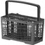 Корзина для столовых приборов — один из обязательных аксессуаров, которыми оснащается любая посудомоечная машина. Она представляет собой сетчатый пластиковый органайзер, в котором устанавливаются в вертикальном положении ложки, ножи и вилки. Корзина, как правило, разделяется на отдельные отсеки, в каждый из которых можно поместить один или несколько предметов. Зачастую сверху она закрывается специальной крышкой, которая также служит для разделения приборов, способствуя более тщательному их мытью.