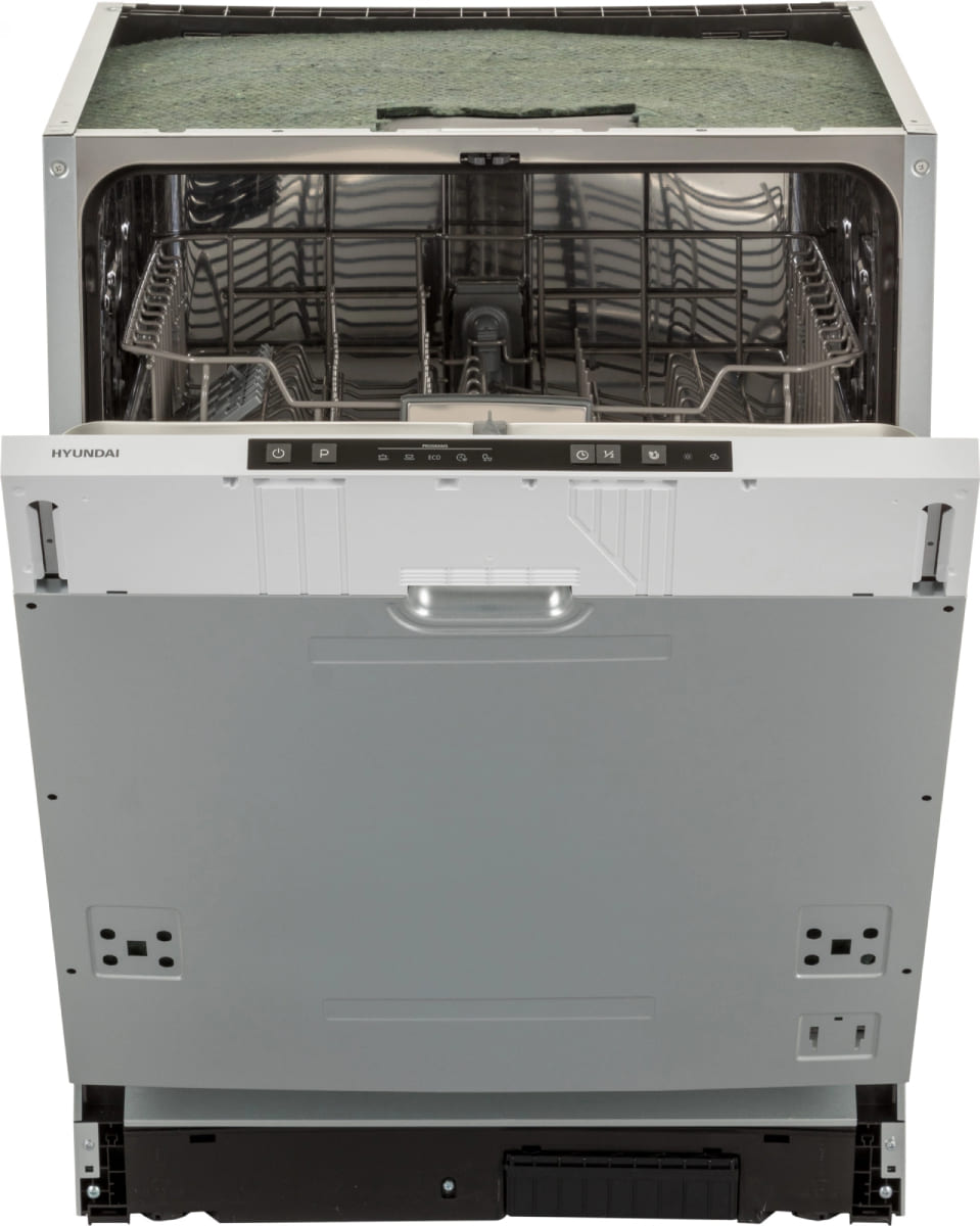 Встраиваемая модель Хендай отлично впишется в любой интерьер, главное — правильно выбрать место, чтобы подвести коммуникации. Устанавливается в нишу целиком, полностью закрывается декоративной панелью. Обратите внимание: в комплекте не идет фасад, его необходимо установить самостоятельно. Имеет стандартные размеры, поэтому может не поместиться на очень маленькой кухне. В камеру можно загрузить ограниченное число комплектов: 12 шт. Комплектом считается набор посуды на одного человека, который нужен для полноценного приема пищи: глубокая и плоская тарелки, тарелка для салата, блюдце под чашку, сама чашка, ложка и вилка.