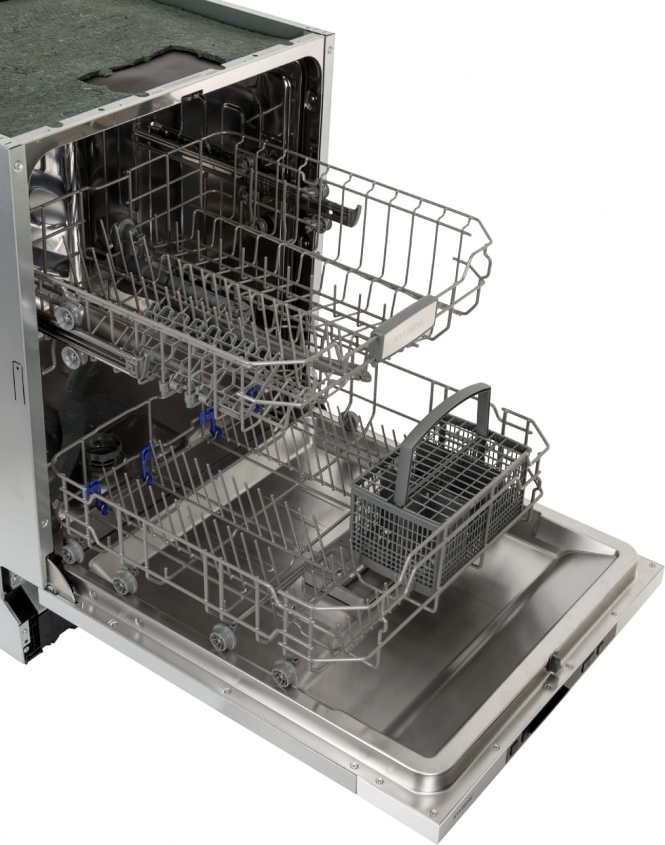 Полноразмерные модели выбирают в больших семьях, а также те, кто много готовит или часто принимает гостей. Их вместимость может составить до 15 комплектов посуды, а габаритные размеры соответствуют размерам стандартной кухонной мебели шириной и глубиной 60 см и высотой 82-85 см. Они выпускаются как во встраиваемом, так и в отдельностоящем варианте: во втором случае для установки понадобится достаточно много места. Как правило, полноразмерные приборы отличаются большим набором стандартных и специальных программ мойки, а также дополнительных опций: в частности, они оснащаются третьей корзиной для мытья столовых приборов.