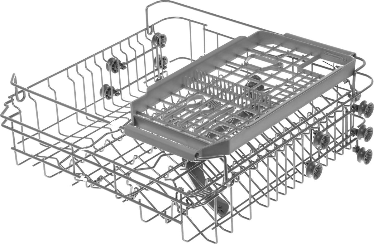 Корзина для столовых приборов — один из обязательных аксессуаров, которыми оснащается любая посудомоечная машина. Она представляет собой сетчатый пластиковый органайзер, в котором устанавливаются в вертикальном положении ложки, ножи и вилки. Корзина, как правило, разделяется на отдельные отсеки, в каждый из которых можно поместить один или несколько предметов. Зачастую сверху она закрывается специальной крышкой, которая также служит для разделения приборов, способствуя более тщательному их мытью.