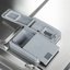 Корзина для столовых приборов достаточно высока, ввиду чего она устанавливается в нижнем коробе, где для нее предусматривается специальное место между разделителями для тарелок. Приборы в корзине могут размещаться как вниз, так и вверх рукоятками — это зависит от количества приборов и требований пользователя. Однако острые предметы — ножи или вилки — необходимо размещать острием вниз для предотвращения травм. Ножи рекомендуется размещать в корзинах с осторожностью, поскольку лезвия из керамики, например, могут затупиться. Чтобы избежать этого, следует использовать фирменные моющие средства и обязательно располагать ножи по отдельности, чтобы они не соприкасались с другими предметами.
