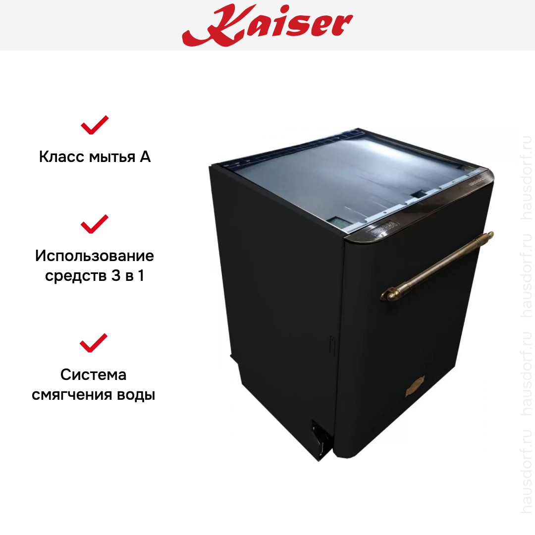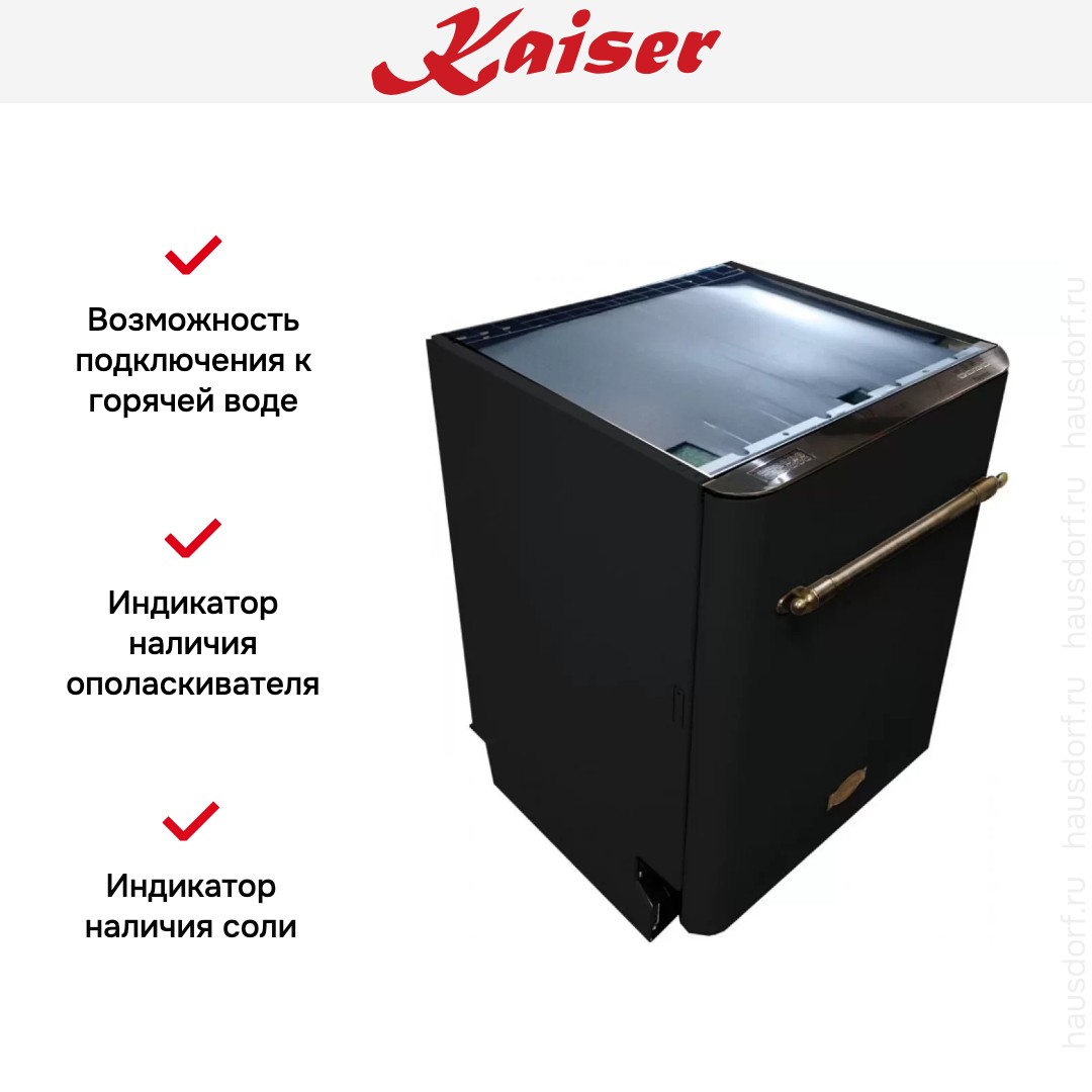 Для комфортной эксплуатации предусмотрен таймер отложенного старта, при помощи которого можно с легкостью перенести начало моечного цикла на любое удобное время в интервале от 1 до 24 часов. Панель управления располагается с внутренней стороны двери, отличается простотой и логичностью. За безопасное использование отвечает система защиты от протечек. Посудомоечная машина Кайзер S60 U 87 XL EM характеризуется тихой работой, а также экономным потреблением электроэнергии — прибор соответствует классу А++. Среди преимуществ устройства: LED-подсветка внутренней камеры, скрытый нагревательный элемент, отложенный старт.