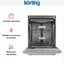 Отдельностоящая модель Кертинг отлично впишется в кухонный интерьер, главное — правильно выбрать место, чтобы подвести коммуникации. Имеет стандартные размеры, поэтому может не поместиться на очень маленькой кухне. В камеру можно загрузить ограниченное число комплектов: 14 шт. Комплектом считается набор посуды на одного человека, который нужен для полноценного приема пищи: глубокая и плоская тарелки, тарелка для салата, блюдце под чашку, сама чашка, ложка и вилка.