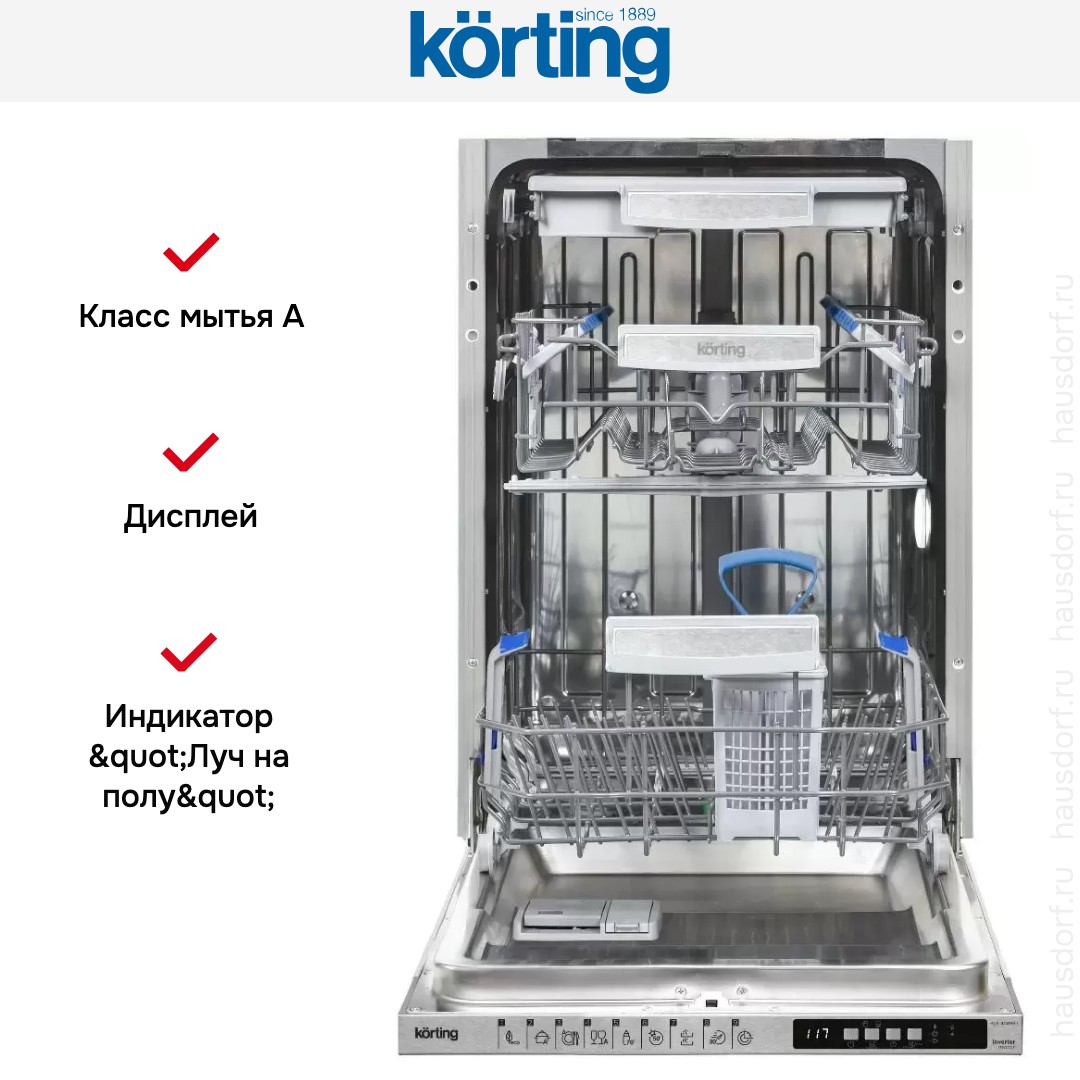Встраиваемая посудомоечная машина Korting KDI 45898 I — это высококачественное и функциональное устройство, которое станет незаменимым помощником на вашей кухне. Ширина всего 44.8 см, что делает ее идеальным выбором для небольших кухонь, где каждый сантиметр на счету.
