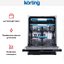 Korting KDI 60575 — полноразмерная посудомоечная машина с полной защитой от протечек и расходом воды 11 литров на один цикл мытья. Модель предназначена для встраивания в стандартную кухонную тумбу, снаружи она закрывается декоративным мебельным фасадом со слайдерным креплением. Вместимость посудомойки — до 14 комплектов посуды. Проточный водонагреватель позволяет сократить длительность мытья. Набор стандартных программ включает программу обычной мойки за 90 минут, интенсивную программу для удаления сильных загрязнений, быструю мойку без сушки, экономичную программу с малым потреблением электроэнергии, бережную мойку стеклянной посуды. Опция половинной загрузки может использоваться для мытья небольшого количества посуды с экономией ресурсов. Изменить выбранную программу можно после начала работы.