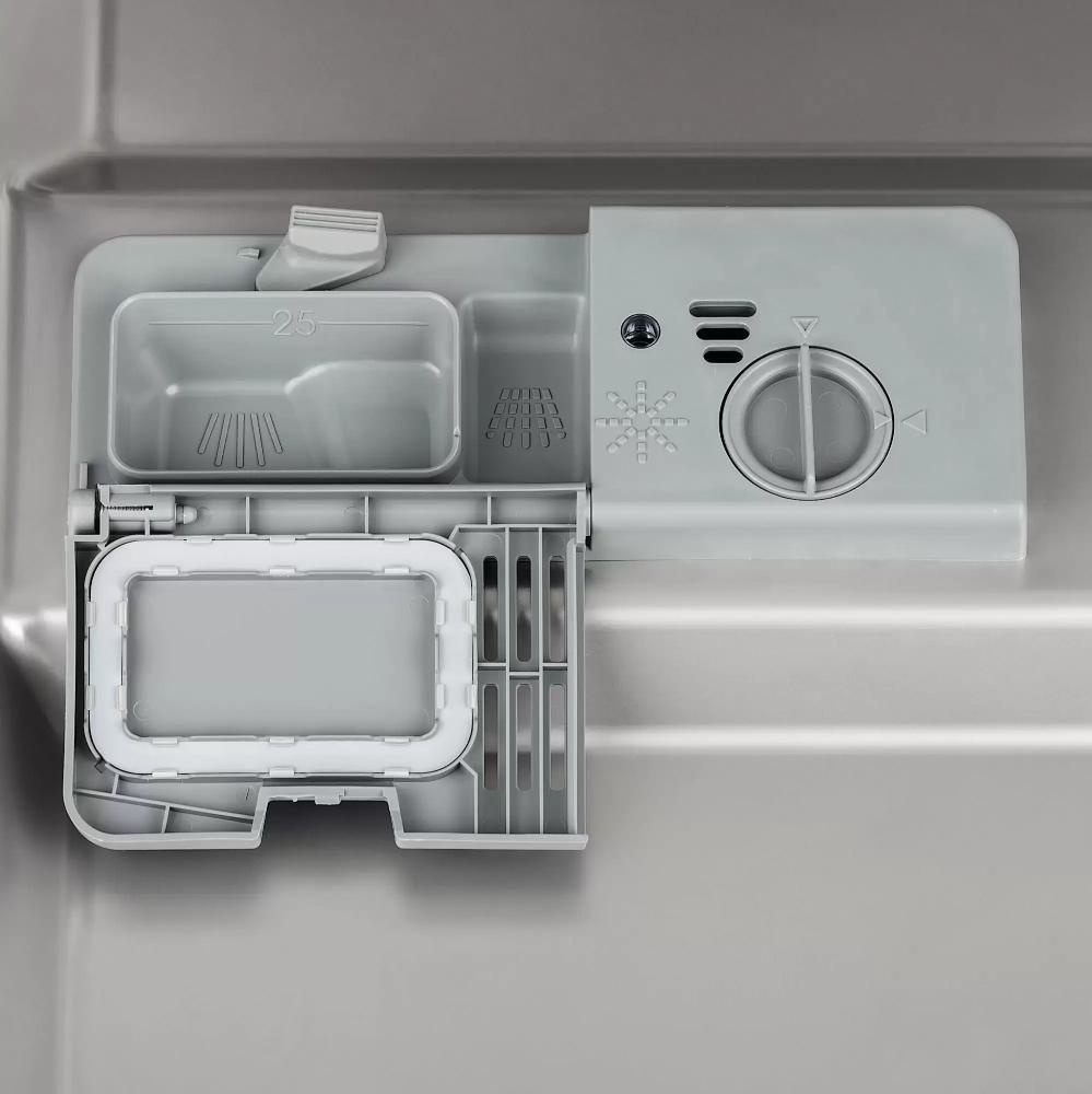 Запас нужно постоянно пополнять, добавляя ее в специальный отсек — расход при этом определяется степенью жесткости. Если индикатор наличия соли не светится, значит, ее достаточно для нормальной работы. Если индикатор начинает мигать, это означает, что средство уже заканчивается. А если индикатор горит, не выключаясь, заполнить соответствующий отсек требуется как можно скорее.
