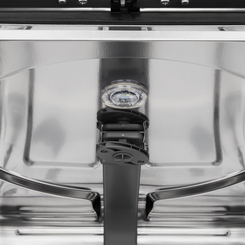 Внутренняя подсветка камеры посудомоечной машины значительно облегчает загрузку и разгрузку посуды, добавление моющего средства, соли и ополаскивателя, гарантирует поддержание чистоты и своевременное удаление остатков пищи, не позволяет забыть мелкие столовые приборы, особенно случайно упавшие на дно камеры, а также упрощает извлечение и очистку фильтра. Подсветка, как правило, включается автоматически, как только открывается дверца посудомоечной машины.