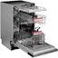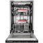 Среди дополнительных опций — отсрочка старта до 24 часов, индикация нехватки ополаскивателя и моющего средства, а также трёхступенчатая система фильтрации, предотвращающая повторное оседание частиц грязи. Управление реализовано через скрытую сенсорную панель в верхней части дверцы, что придаёт фасаду эстетичный и минималистичный облик.