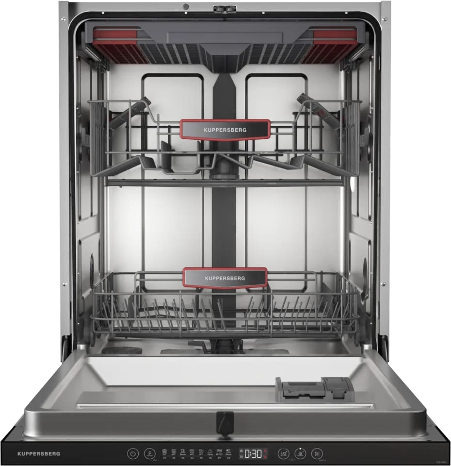 Встраиваемая модель Куперсберг отлично впишется в любой интерьер, главное — правильно выбрать место, чтобы подвести коммуникации. Устанавливается в нишу целиком, полностью закрывается декоративной панелью. Обратите внимание: в комплекте не идет фасад, его необходимо установить самостоятельно. Имеет стандартные размеры, поэтому может не поместиться на очень маленькой кухне. В камеру можно загрузить ограниченное число комплектов: 16 шт. Комплектом считается набор посуды на одного человека, который нужен для полноценного приема пищи: глубокая и плоская тарелки, тарелка для салата, блюдце под чашку, сама чашка, ложка и вилка.