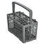 Корзина для столовых приборов — один из обязательных аксессуаров, которыми оснащается любая посудомоечная машина. Она представляет собой сетчатый пластиковый органайзер, в котором устанавливаются в вертикальном положении ложки, ножи и вилки. Корзина, как правило, разделяется на отдельные отсеки, в каждый из которых можно поместить один или несколько предметов. Зачастую сверху она закрывается специальной крышкой, которая также служит для разделения приборов, способствуя более тщательному их мытью.