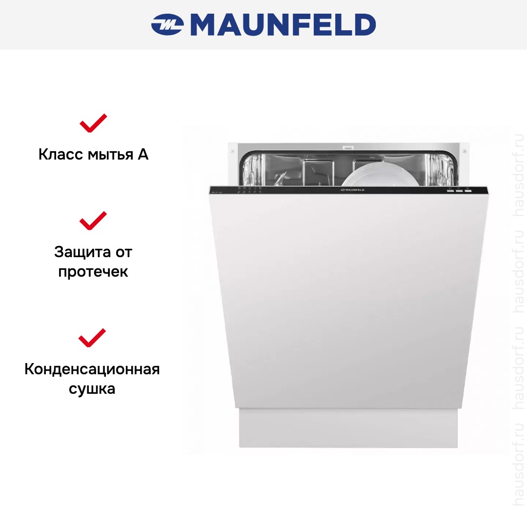 Встраиваемая посудомоечная машина MAUNFELD MLP12I оптимальна для повседневного использования. Данная модель встраивается в кухонный шкафчик и практически не видна за фасадом кухонной мебели. В посудомоечной машинке Маунфилд предусмотрены пять основных режимов, которые позволяют использовать ее как для легкого споласкивания таки для очищения посуды от сложных загрязнений. Особенности работы и конструкции прибора: