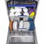 Внутренняя подсветка камеры посудомоечной машины значительно облегчает загрузку и разгрузку посуды, добавление моющего средства, соли и ополаскивателя, гарантирует поддержание чистоты и своевременное удаление остатков пищи, не позволяет забыть мелкие столовые приборы, особенно случайно упавшие на дно камеры, а также упрощает извлечение и очистку фильтра. Подсветка, как правило, включается автоматически, как только открывается дверца посудомоечной машины.