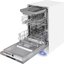 Узкие посудомоечные машины отличает ширина от 44,5 до 45 см при стандартных высоте и глубине и, соответственно, меньшая вместимость, не превышающая 10 комплектов посуды. Обычно это приборы встраиваемого типа, которые легко устанавливаются в узкую мебельную тумбу. Компактные устройства значительно меньше полноразмерных по высоте, а по своей ширине практически от них не отличаются — она составляет от 55 до 60 см. Вместимость подобных небольших машин встраиваемого и отдельно стоящего типа — 4-6 комплектов посуды.