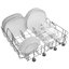 Опуская или поднимая корзину, вы можете положить в нее крупную или обычную посуду. Благодаря этому отмываются не только обеденные тарелки, но и сковороды, кастрюли.