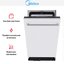 Встраиваемая модель Мидеа отлично впишется в любой интерьер, главное — правильно выбрать место, чтобы подвести коммуникации. Устанавливается в нишу целиком, полностью закрывается декоративной панелью. Обратите внимание: в комплекте не идет фасад, его необходимо установить самостоятельно. Имеет стандартные размеры, поэтому может не поместиться на очень маленькой кухне. В камеру можно загрузить ограниченное число комплектов: 10 шт. Комплектом считается набор посуды на одного человека, который нужен для полноценного приема пищи: глубокая и плоская тарелки, тарелка для салата, блюдце под чашку, сама чашка, ложка и вилка.
