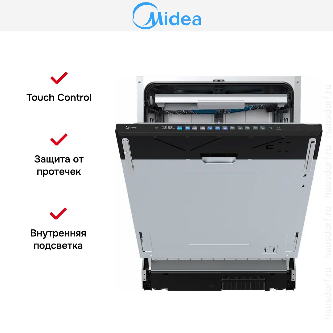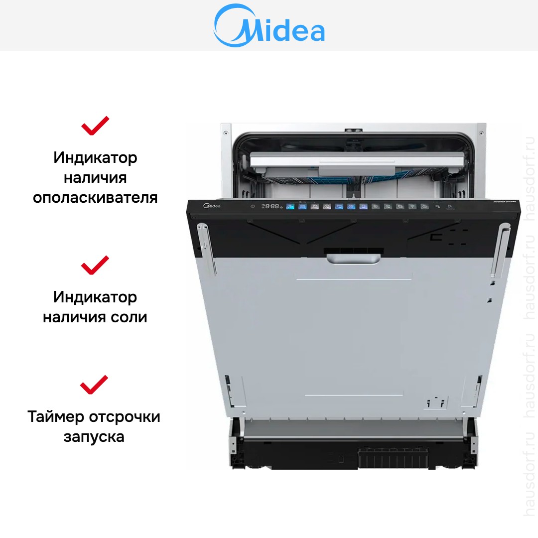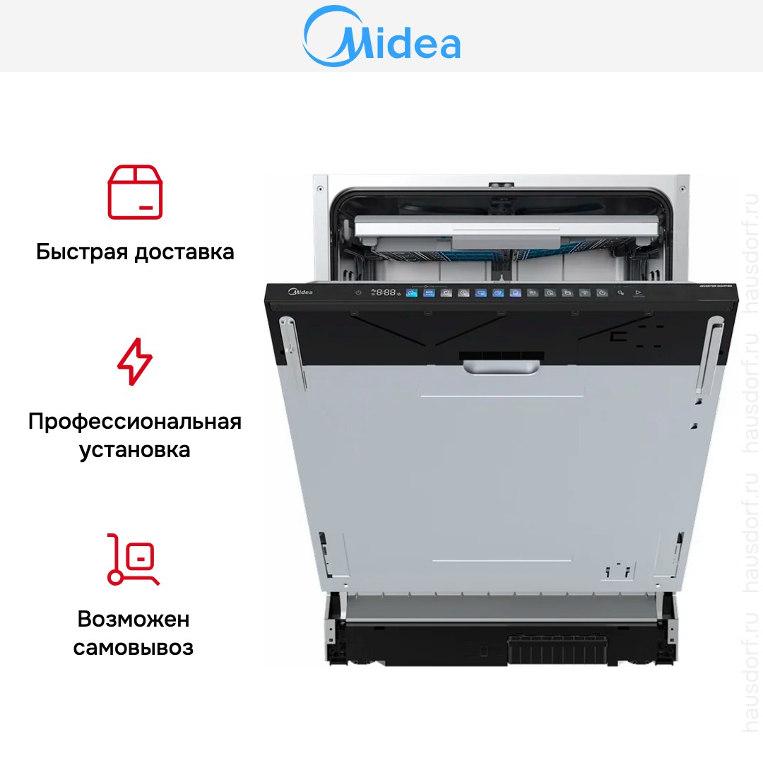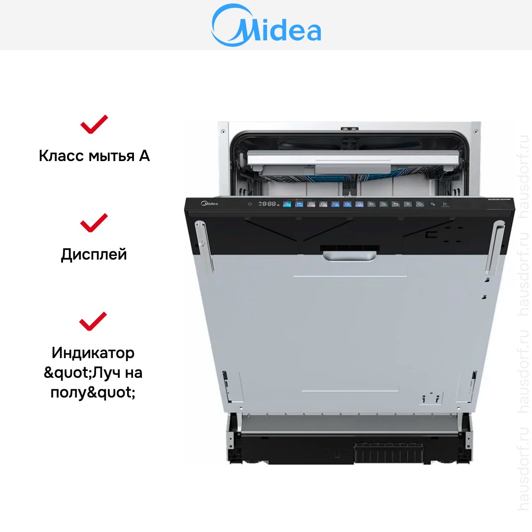 Встраиваемая посудомоечная машина Midea MID60S730i — это современное решение для кухни, сочетающее компактность, функциональность и высокую производительность. Благодаря полновстраиваемому типу установки, техника гармонично интегрируется в интерьер, не нарушая эстетики кухонного гарнитура. Агрегат относится к полноразмерным моделям, что обеспечивает вместимость до 14 комплектов посуды — идеальный вариант для семьи или приёма гостей.