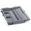 Столовые приборы и другие кухонные принадлежности располагаются в нем в горизонтальном положении: так они занимают гораздо меньше места, чем в обычных корзинах, которые устанавливаются в нижнем коробе. Высота этого лотка может составить до 5 см: таким образом, в нем можно разместить не только ножи, вилки и ложки, но и кофейные или чайные чашки, лопатки, большие разливные ложки, многоразовые пробки для бутылок, воронки, терки и прочую подобную утварь. Для фиксации мелких вещей служат специальные боковые держатели.