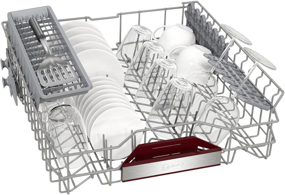 Встраиваемая модель Нефф отлично впишется в любой интерьер, главное — правильно выбрать место, чтобы подвести коммуникации. Устанавливается в нишу целиком, полностью закрывается декоративной панелью. Обратите внимание: в комплекте не идет фасад, его необходимо установить самостоятельно. Имеет стандартные размеры, поэтому может не поместиться на очень маленькой кухне. В камеру можно загрузить ограниченное число комплектов: 13 шт. Комплектом считается набор посуды на одного человека, который нужен для полноценного приема пищи: глубокая и плоская тарелки, тарелка для салата, блюдце под чашку, сама чашка, ложка и вилка.