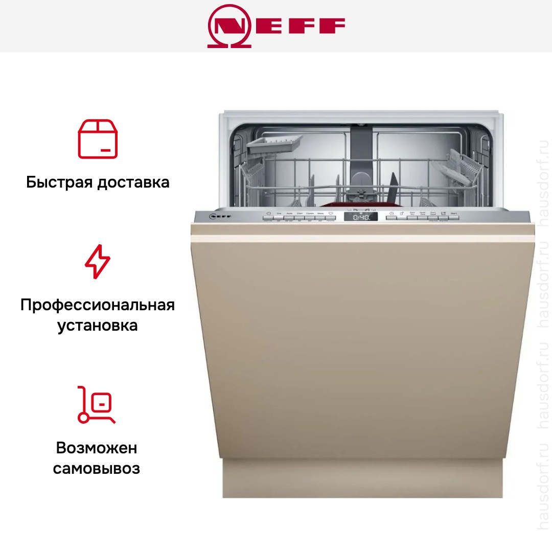 Встраиваемая модель Нефф отлично впишется в любой интерьер, главное — правильно выбрать место, чтобы подвести коммуникации. Устанавливается в нишу целиком, полностью закрывается декоративной панелью. Обратите внимание: в комплекте не идет фасад, его необходимо установить самостоятельно. Имеет стандартные размеры, поэтому может не поместиться на очень маленькой кухне. В камеру можно загрузить ограниченное число комплектов: 13 шт. Комплектом считается набор посуды на одного человека, который нужен для полноценного приема пищи: глубокая и плоская тарелки, тарелка для салата, блюдце под чашку, сама чашка, ложка и вилка.