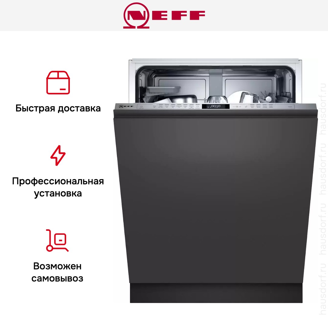 Встраиваемая модель Нефф отлично впишется в любой интерьер, главное — правильно выбрать место, чтобы подвести коммуникации. Устанавливается в нишу целиком, полностью закрывается декоративной панелью. Обратите внимание: в комплекте не идет фасад, его необходимо установить самостоятельно. Имеет стандартные размеры, поэтому может не поместиться на очень маленькой кухне. В камеру можно загрузить ограниченное число комплектов: 13 шт. Комплектом считается набор посуды на одного человека, который нужен для полноценного приема пищи: глубокая и плоская тарелки, тарелка для салата, блюдце под чашку, сама чашка, ложка и вилка.