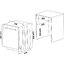 Встраиваемые устройства устанавливаются в тумбу или нишу мебельного гарнитура. В случае, если они полностью закрыты мебельным фасадом, машины считаются полностью встраиваемыми. Такое размещение позволяет сохранить единый стиль интерьера. Панель управления их также скрыта — чтобы начать работу и задать программу, дверцу придется открыть.