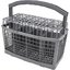 Корзина для столовых приборов — один из обязательных аксессуаров, которыми оснащается любая посудомоечная машина. Она представляет собой сетчатый пластиковый органайзер, в котором устанавливаются в вертикальном положении ложки, ножи и вилки. Корзина, как правило, разделяется на отдельные отсеки, в каждый из которых можно поместить один или несколько предметов. Зачастую сверху она закрывается специальной крышкой, которая также служит для разделения приборов, способствуя более тщательному их мытью.