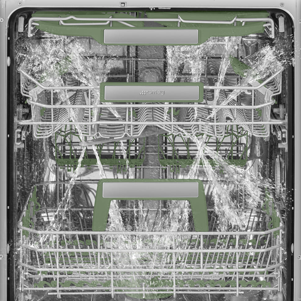 Встраиваемая модель Смег отлично впишется в любой интерьер, главное — правильно выбрать место, чтобы подвести коммуникации. Устанавливается в нишу целиком, полностью закрывается декоративной панелью. Обратите внимание: в комплекте не идет фасад, его необходимо установить самостоятельно. Имеет стандартные размеры, поэтому может не поместиться на очень маленькой кухне. В камеру можно загрузить ограниченное число комплектов: 14 шт. Комплектом считается набор посуды на одного человека, который нужен для полноценного приема пищи: глубокая и плоская тарелки, тарелка для салата, блюдце под чашку, сама чашка, ложка и вилка.