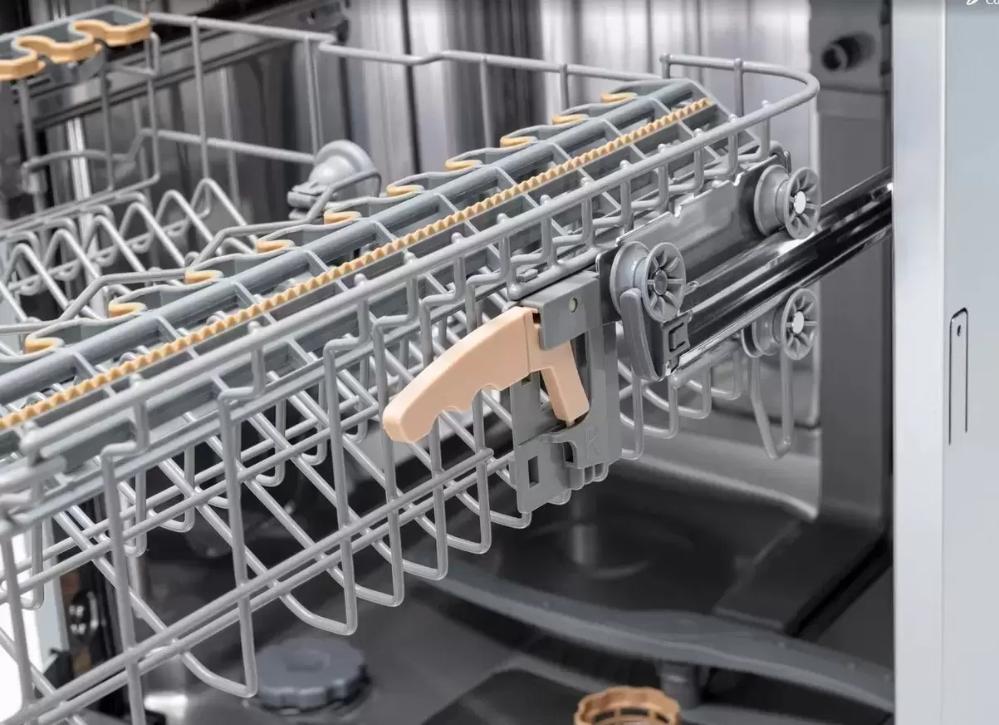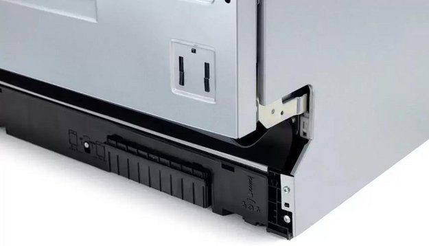 Оставлять встраиваемую посудомойку без фасада не рекомендуется не только из эстетических соображений: уровень натяжения петель бывает рассчитан именно на дверцу с фасадом. Кроме того, панель защищает установленную рядом технику от воздействия высоких температур и повышенной влажности, позволяет скрыть панель управления от маленьких детей и обеспечивает дополнительную шумоизоляцию. Слайдерное крепление фасада используется в машинах с цоколем небольшой высоты — до 8-10 см.