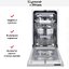 Узкие посудомоечные машины отличает ширина от 44,5 до 45 см при стандартных высоте и глубине и, соответственно, меньшая вместимость, не превышающая 10 комплектов посуды. Обычно это приборы встраиваемого типа, которые легко устанавливаются в узкую мебельную тумбу. Компактные устройства значительно меньше полноразмерных по высоте, а по своей ширине практически от них не отличаются — она составляет от 55 до 60 см. Вместимость подобных небольших машин встраиваемого и отдельно стоящего типа — 4-6 комплектов посуды.