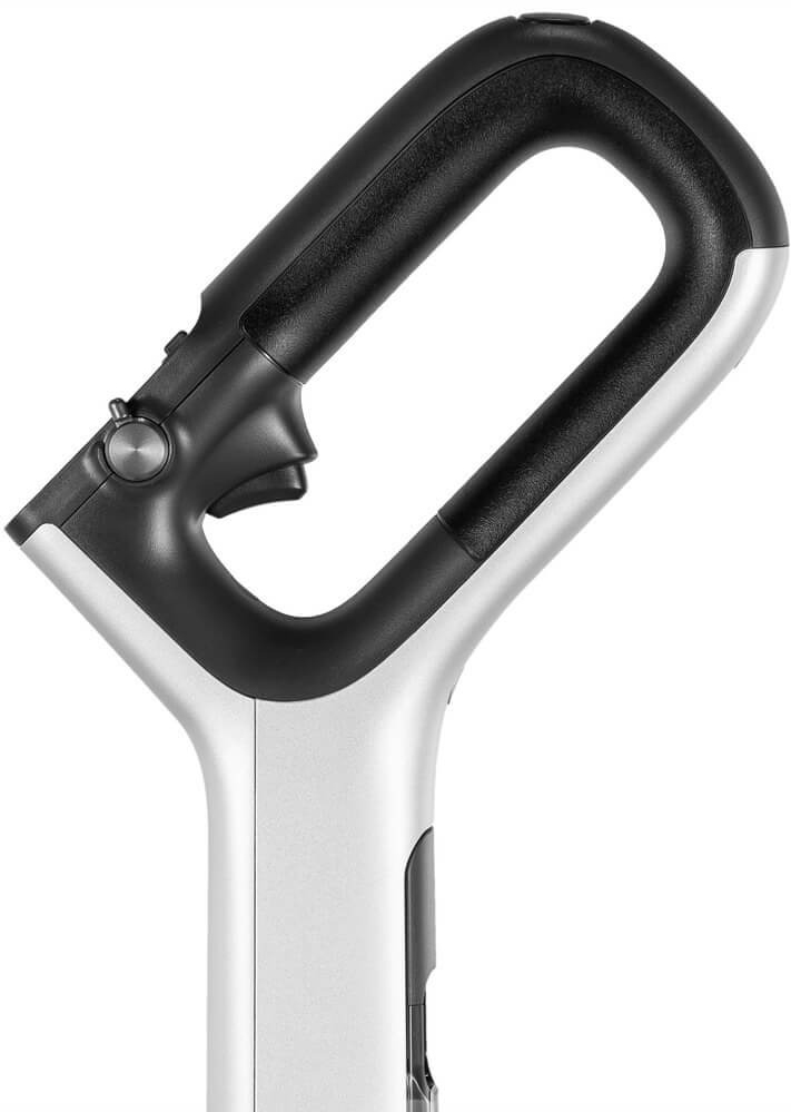 Удобная система управления пылесосом располагается прямо на ручке со шлангом или трубкой всасывания — кнопки регулирования и индикатор мощности, а также клавиши включения/выключения.