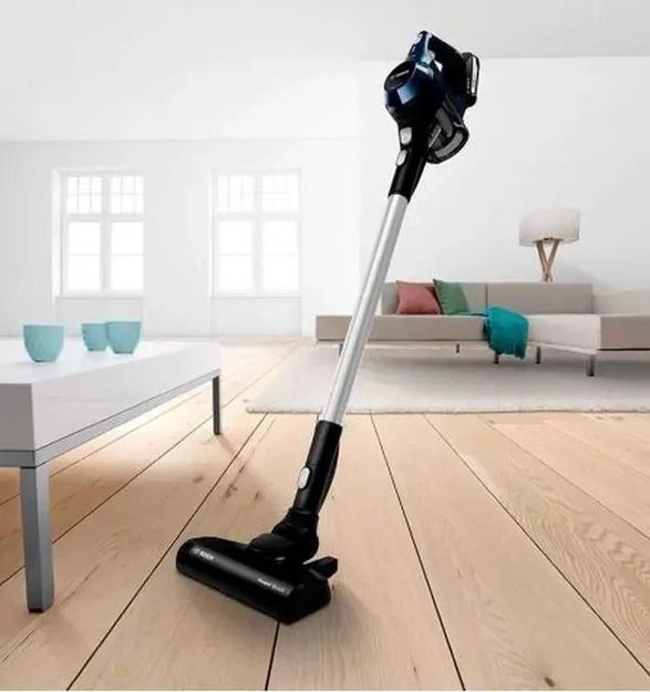 Вертикальный пылесос Bosch BCS611P4A отличается высокой ручкой с насадкой, благодаря которой не нужно наклоняться во время уборки, а также компактным корпусом. Данная модель рассчитана только на сухую уборку, которой достаточно для большинства пользователей. Мощный поток воздуха позволяет быстро всасывать как мелкие, так и крупные частицы, волосы и шерсть. Основной цвет прибора — синий. В качестве пылесборника производитель установил стандартный контейнер. Пользоваться им легко и удобно: чтобы очистить, просто достаньте его и высыпьте все в мусорное ведро, а затем протрите или вымойте емкость изнутри. Объем заполнения пылесборника — 0.3 л.